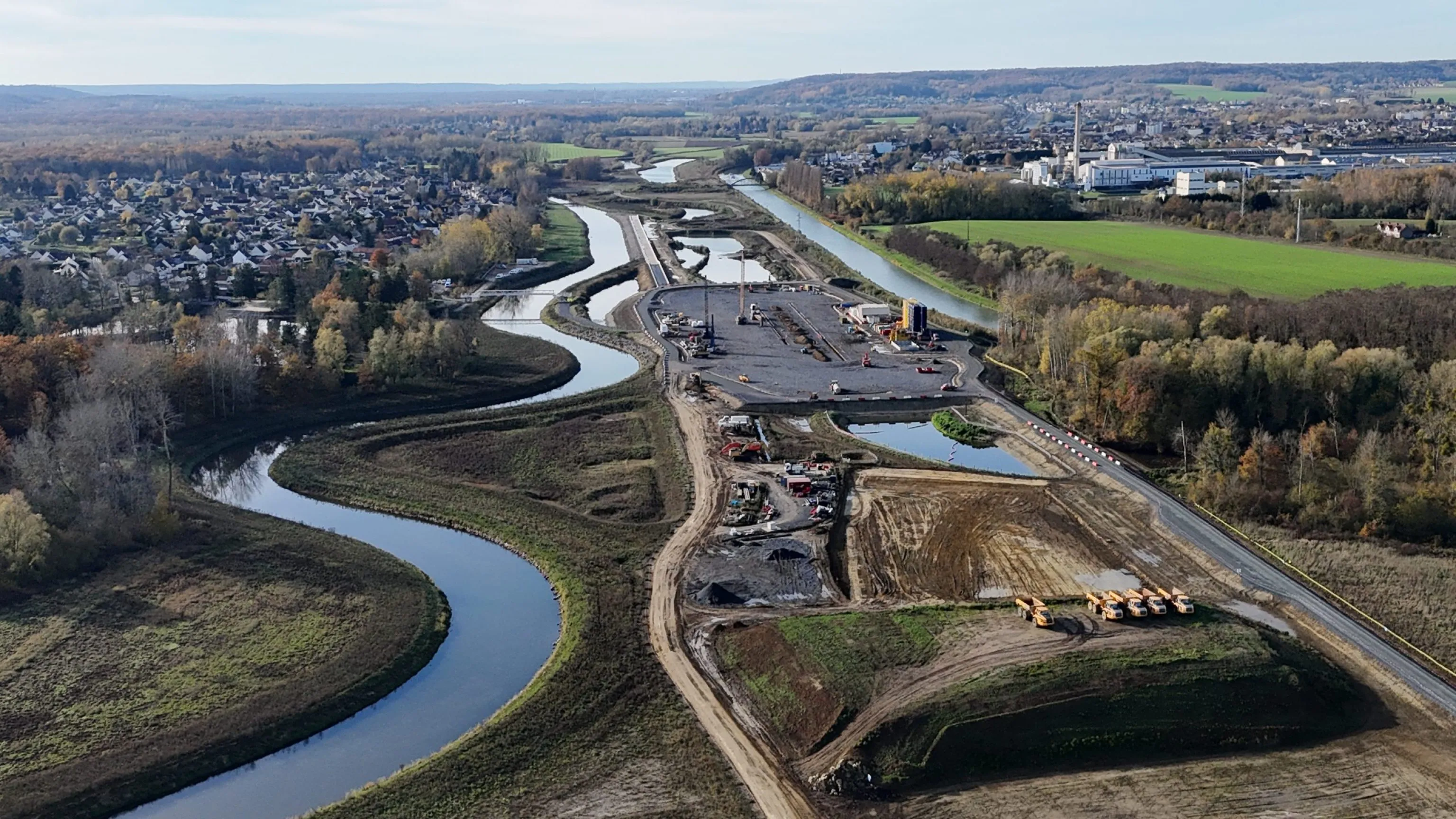 The Seine–Nord Europe Canal consists of the construction of a 107 km river infrastructure between the Oise and the Dunkirk-Escaut Canal, on the North Sea-Mediterranean Corridor. It is the central link in the European Seine-Escaut priority project. The work includes the construction of a Vb gauge canal between Compiègne and Aubencheul-au-bac, the construction of transhipment quays and the prefiguration (quays and earthworks) of 4 multimodal platforms for various activities (logistics, industrial, tourism, etc.) as well as the construction of 6 locks, a 1.3 km canal bridge, a 14 million m3 water reservoir basin. In addition, the project is being carried out within the framework of a sustainable development procedure and a “Major construction site” approach.